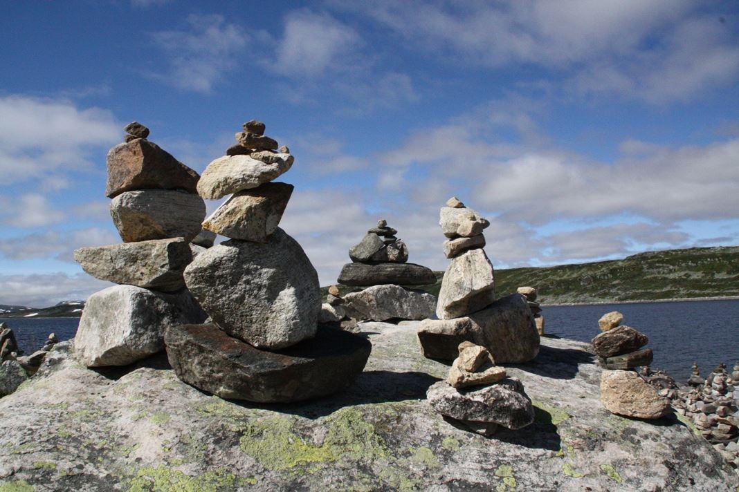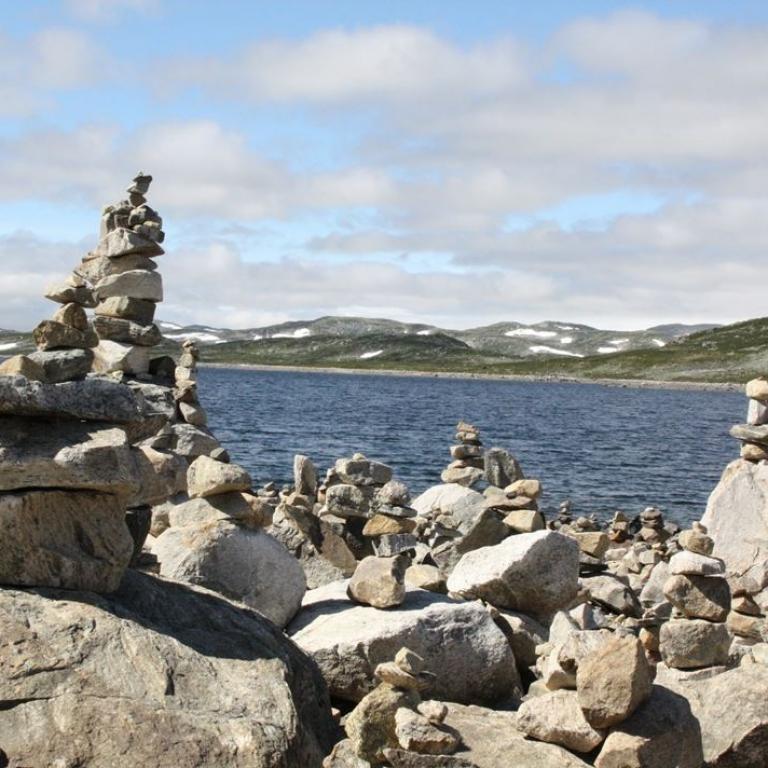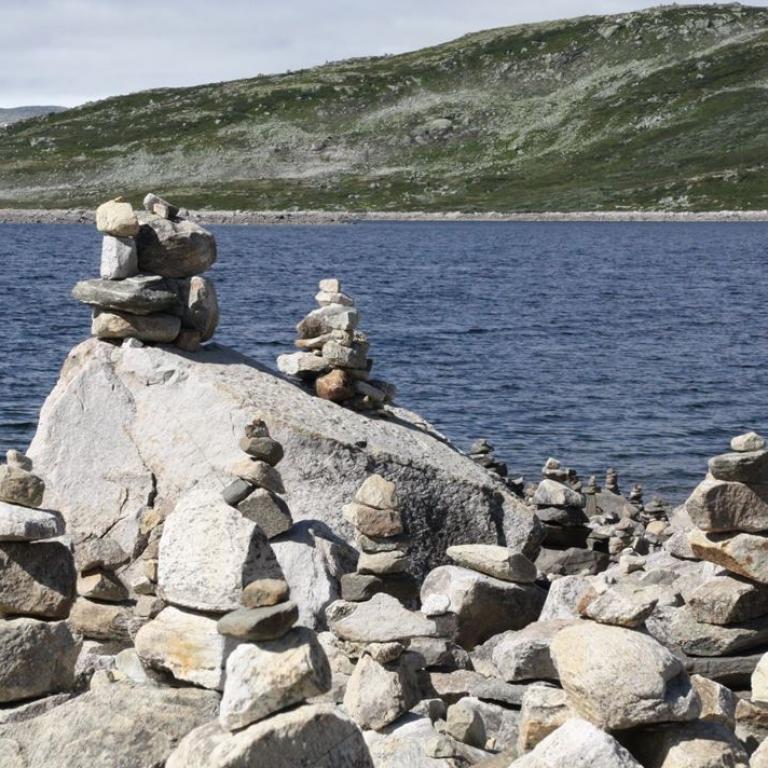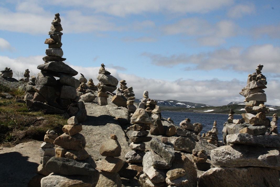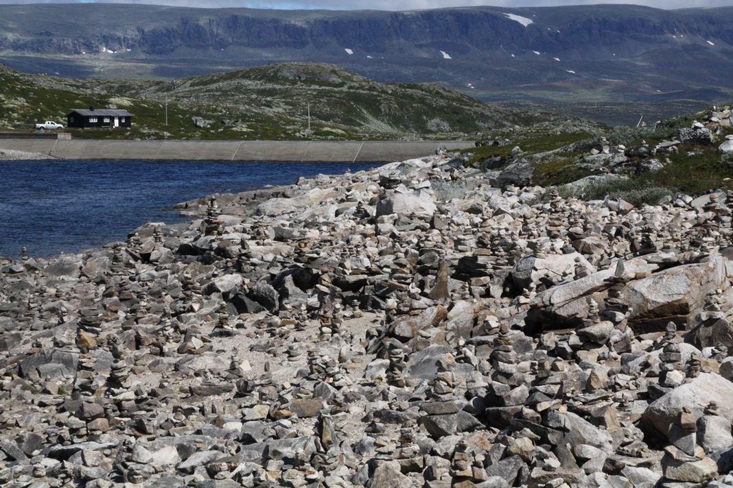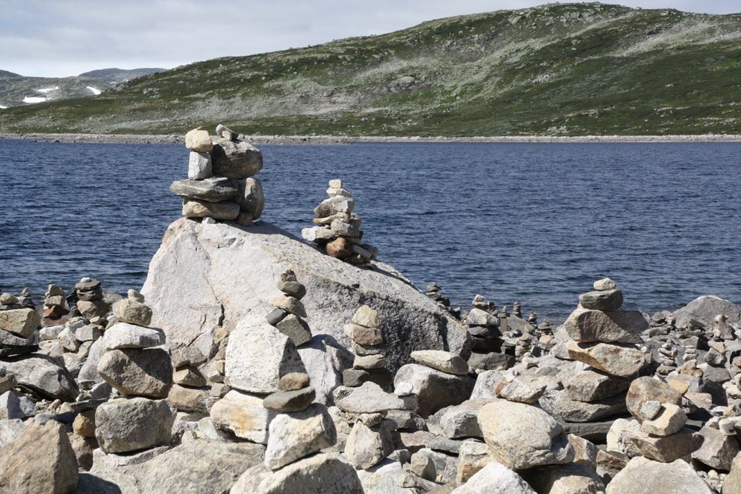 Aber noch mal kurz 90km (und knapp 2 Stunden) zurück. Ich habe den Blick über die Seen an denen ich vorbeigefahren bin genossen und ich hatte Hunger. An den meisten Seen ist auch ein Parkplatz für die Touristen, diese waren überfüllt - fast nur Wohnmobile oder Wohnwagen .... Am Orteren war wenig los und ich konnte "Mittag machen". Dabei habe ich die Steinfiguren entdeckt. Unten ein paar Bilder.