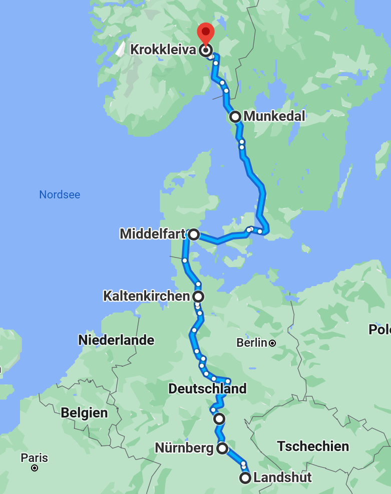 1. Etappe von Landshut nach Kaltenkirchen (wobei mich tomtom in Franken, um Staus herum, ein wenig umgeleitet hat) - 825km